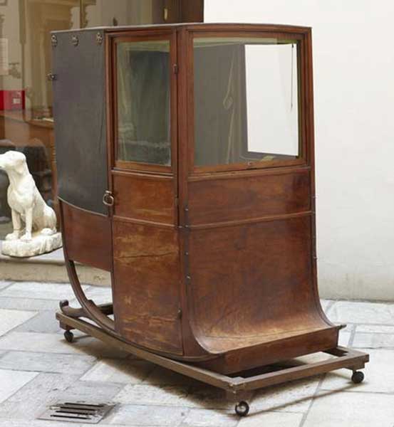 Nell’ex androne interno, sono esposti alcuni oggetti di notevole rilevanza, tra cui le portantine di Rodolfo d’Asburgo e del Granduca di Toscana Pietro Leopoldo, (qui sotto in fotografia)